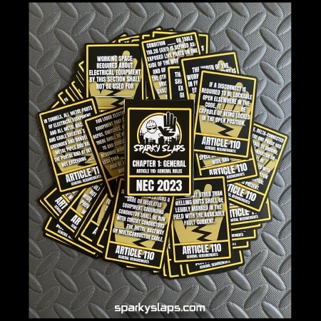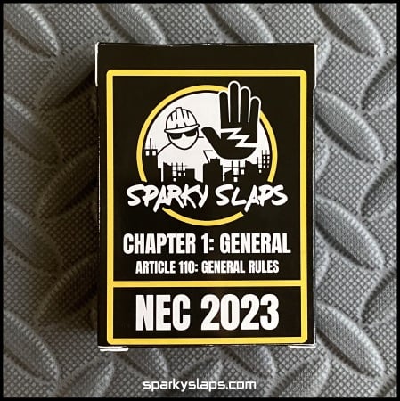 A 52-card flashcard deck focused on Article 110 of the 2023 NEC — general requirements for electrical installations. Includes two bonus cards.